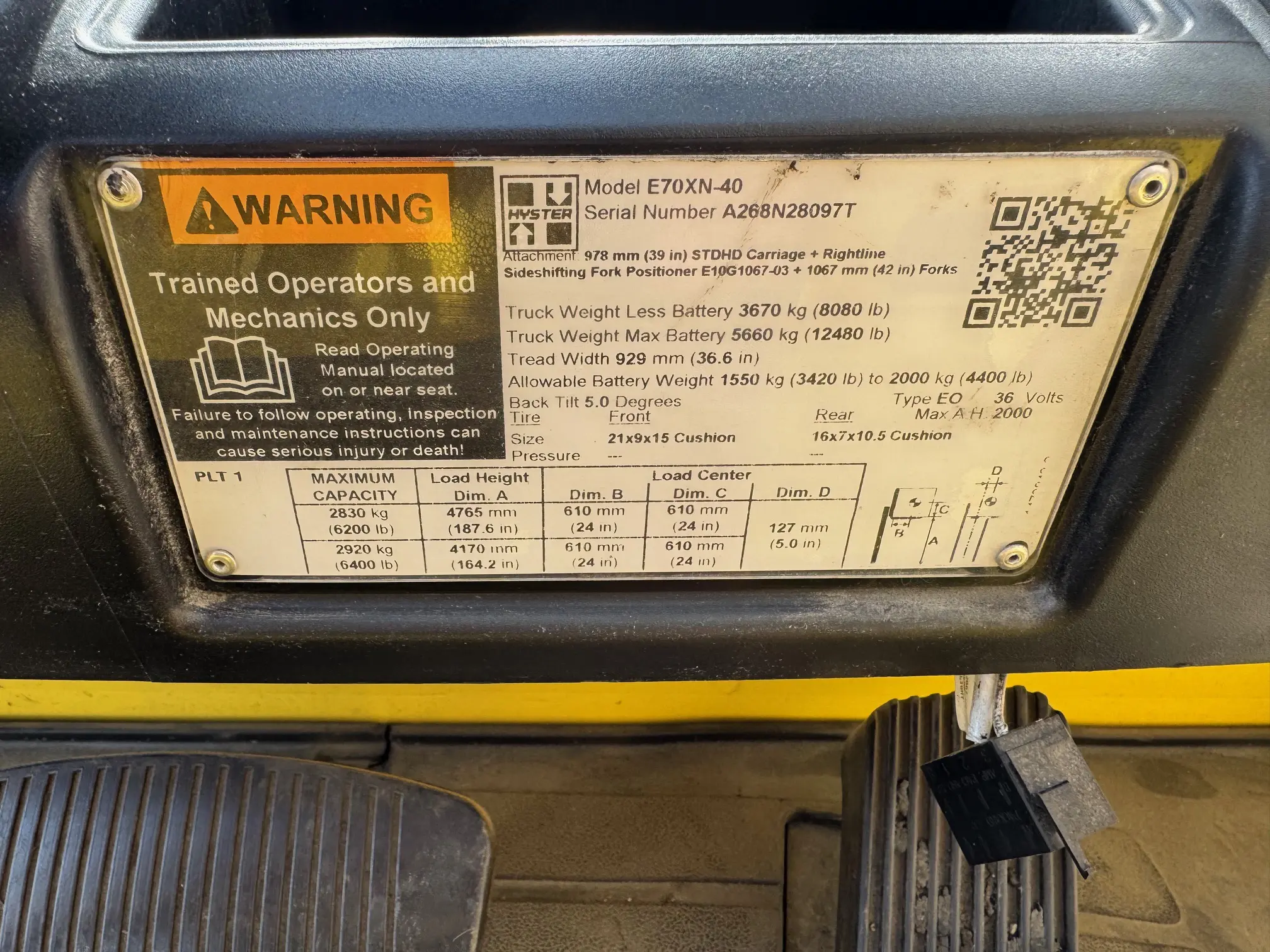 7,000# capacity, 48V, 88″/triple stage, equipped with side shift & fork positioner, 5 hour plus battery, low hours…very nice!!